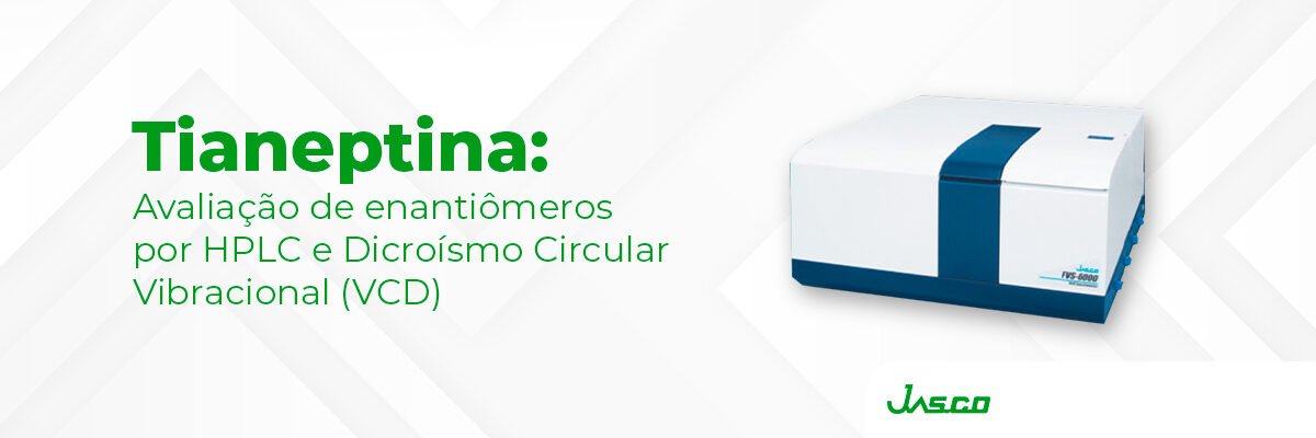 A caracterização da configuração absoluta foi realizada por dicroísmo circular vibracional (VCD) empregando o espectrômetro FVS-6000 da Jasco, que detecta a absorção diferencial de luz polarizada circularmente por moléculas quirais. Comparando os espectros experimentais com modelos estereoquímicos calculados, foi possível determinar de forma inequívoca a configuração absoluta da Tianeptina.